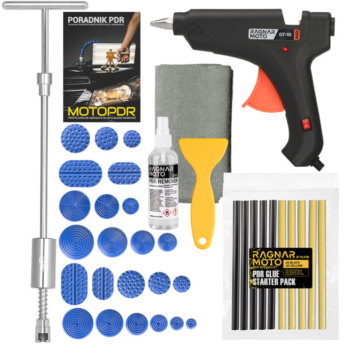 Pistolet do kleju na gorąco – w zestawie znajduje się również pistolet na klej, który może być używany zarówno do wyciągania wgnieceń z karoserii, jak i w projektach DIY. Możesz go wykorzystać w garażu, warsztacie czy w domu.