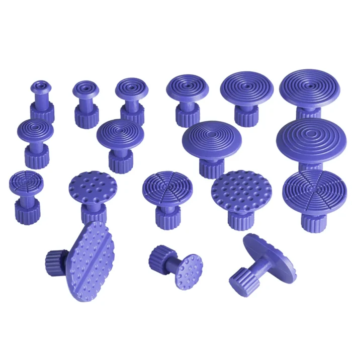 Różnorodność rozmiarów – w zestawie znajdują się 23 grzybki o różnych kształtach i rozmiarach, umożliwiające dopasowanie narzędzia do konkretnego wgniecenia. Przed użyciem, grzybki przemyj preparatem odtłuszczającym, ponieważ są pokryte warstwą zabezpieczającą.