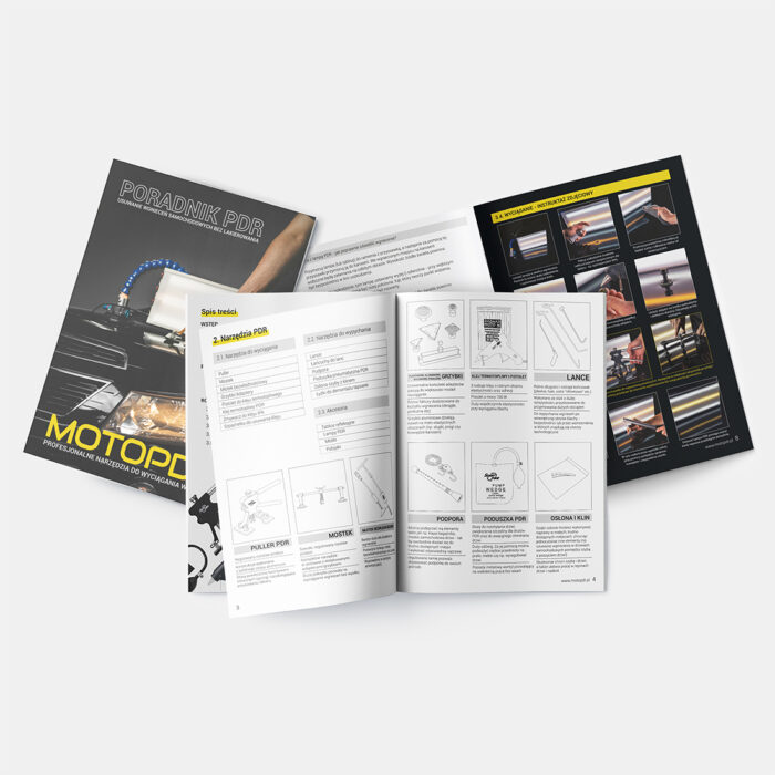 Poradnik PDRzestaw zawiera poradnik z prostymi opisami i zdjęciami, które pomogą w korzystaniu z metody usuwania wgnieceń bez lakierowania.